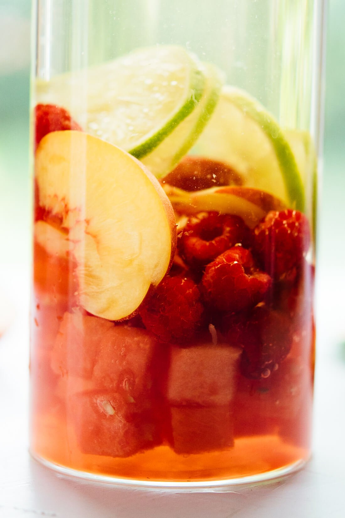 The best white sangria recipe, featuring watermelon, summer fruit and St-Germain liqueur. This sangria is absolutely perfect for summertime sipping.