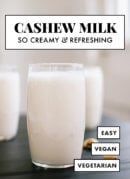 Please let me know how your cashew milk turns out in the comments! If youโ€™re looking for more homemade milk alternatives, check donโ€™t miss my pecan milk, oat milk and pistachio milk.